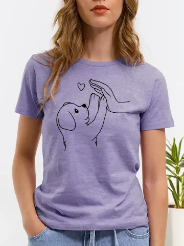 Add a playful touch to your wardrobe with this Women’s Casual Short Sleeve Round Neck T-Shirt, featuring a charming dog high-five and heart print.
